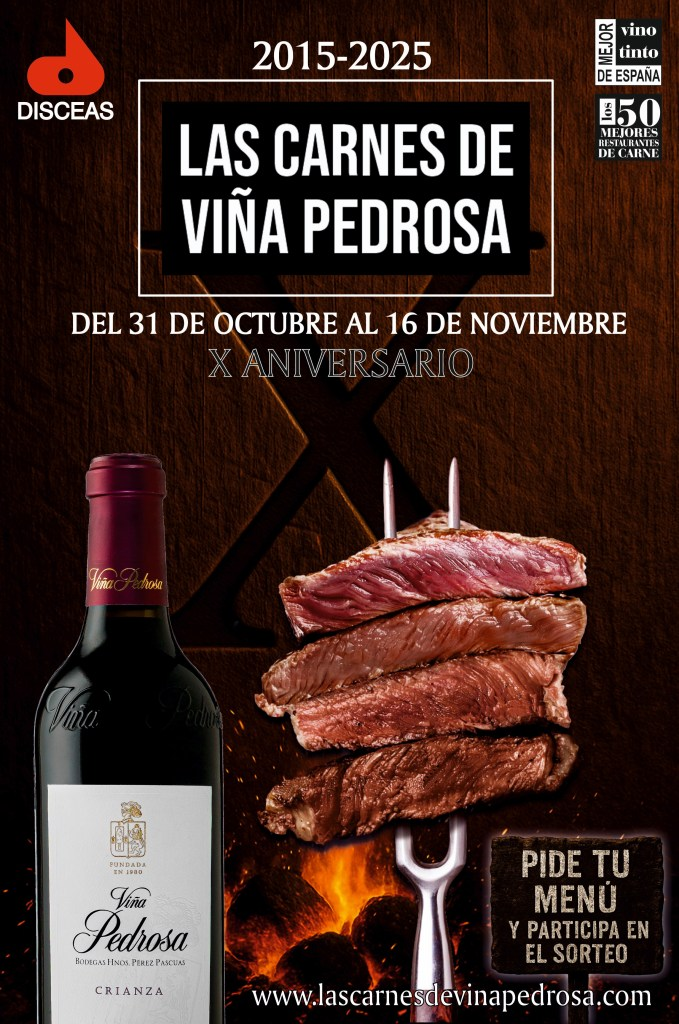 Junto a DISCEAS, nuestro distribuidor oficial en Asturias, llevamos 10 años consecutivos organizando estas jornadas culinarias, que se han convertido en un encuentro destacado para los amantes de Viña Pedrosa y de la buena carne. Como en años anteriores, los mejores restaurantes de Asturias participan, ofreciendo propuestas gastronómicas diseñadas para lograr el maridaje perfecto, combinando carnes de calidad con nuestro Viña Pedrosa Crianza, el vino más representativo de nuestra bodega.